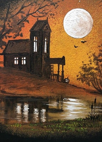 Aceo Print Of Painting Halloween Ryta Gothic Landscape Haunted House Full Moon Ebay